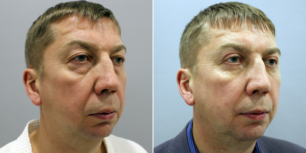 Возрастным пациентам часто проводится одновременная пластика верхних и нижних век. Это позволяет получить всеобъемлющий омолаживающий результат. Это вариант для мужчин, у которых возрастные изменения коснулись и верхних и нижyих век.