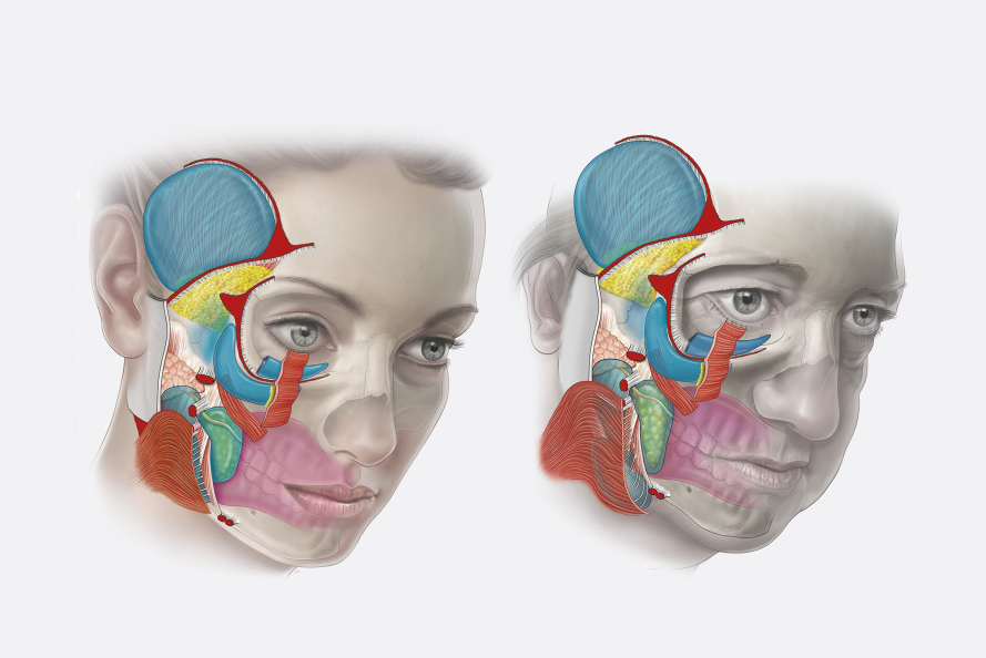 Во время операции по подтяжке лица доктор аккуратно делает надрезы вокруг линии роста волос и ушей, чтобы получить доступ к подлежащим мышцам и тканям. Подняв и подтянув их, можно разгладить морщины, удалить лишнюю кожу и улучшить контур лица. Доступны несколько вариантов фейслифтинга, включая эндоскопическую подтяжку лица, SMAS-подтяжку и спейслифтинг.