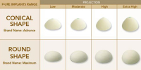 При успешном применении импланта конусовидной формы молочная железа как бы распределяется непосредственно по нему намного более естественно, чем при использовании иных вариантов эндопротезов.