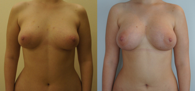 Около 500 мл. полученной жировой ткани было использовано для коррекции асимметрии и увеличения груди. Ни хирург, ни пациентка не ставили целью получение какого-то конкретного размера. Важнее было уменьшить асимметрию и сделать фигуру более пропорциональной за счет уменьшения бедер и увеличения груди.